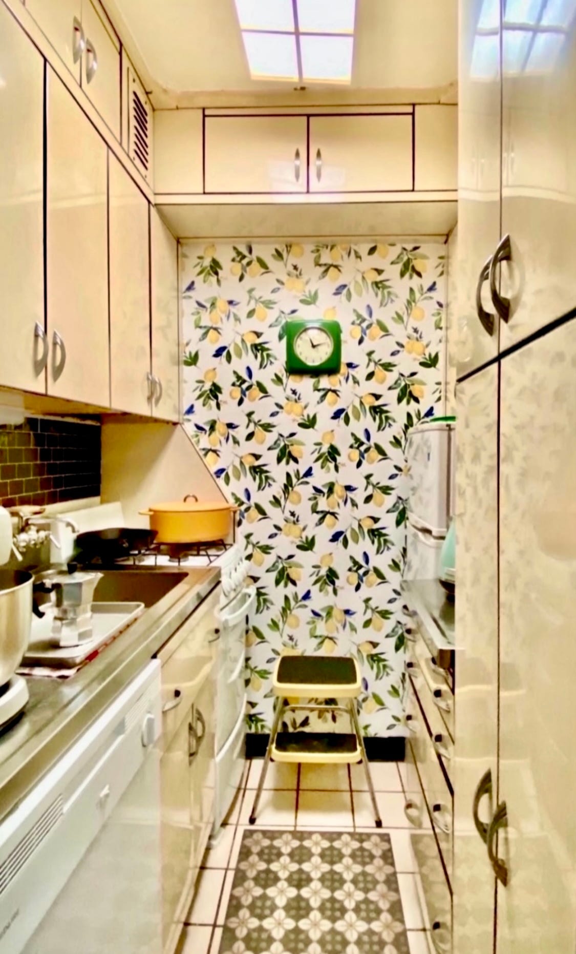 Old buildings, however lovely, often need a major makeover (hello, ancient pipes) and a complete building-wide renovation, including the few remaining vintage kitchen units (of which mine is one) is underway.