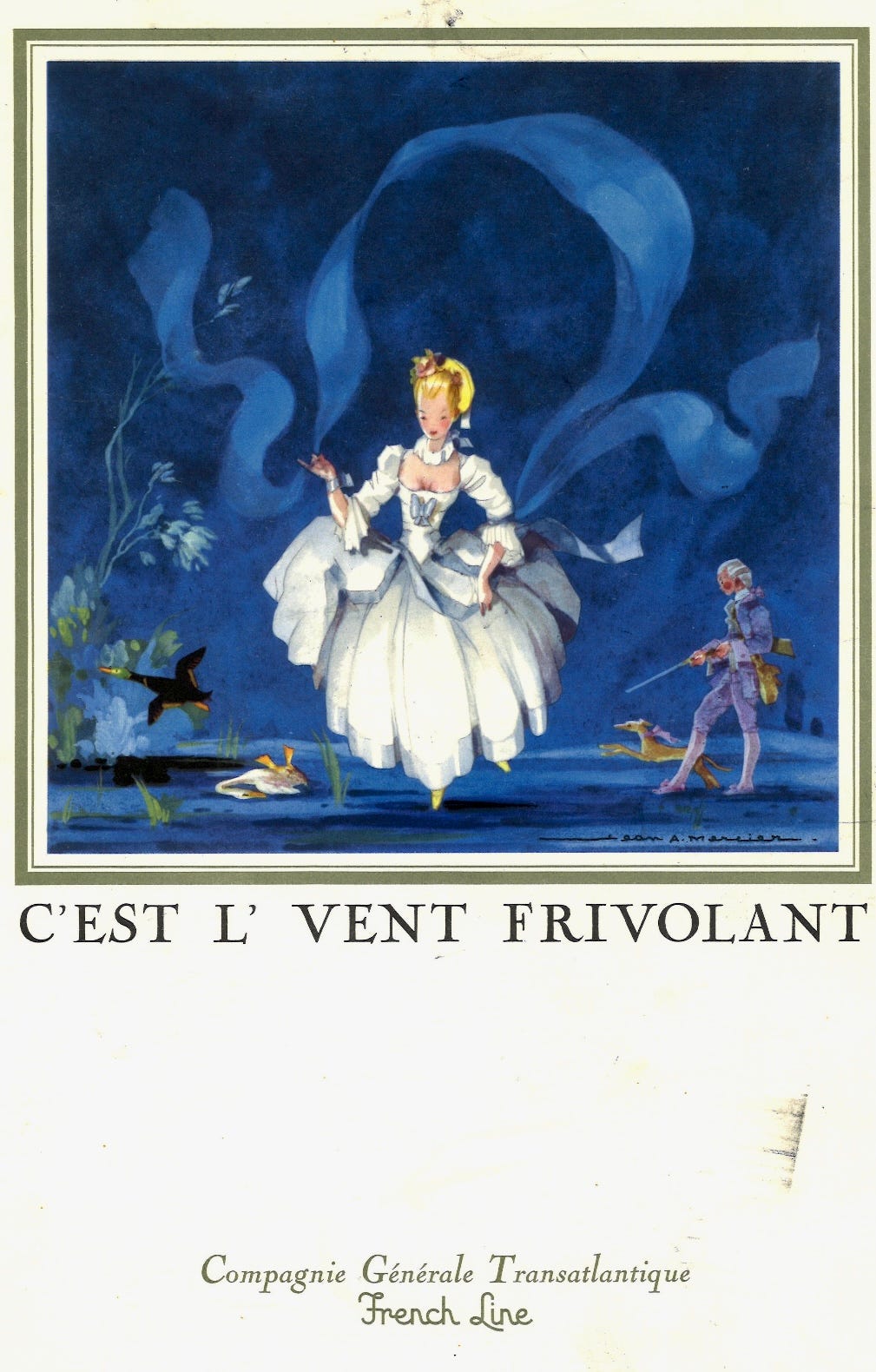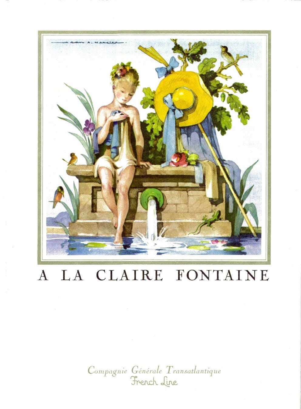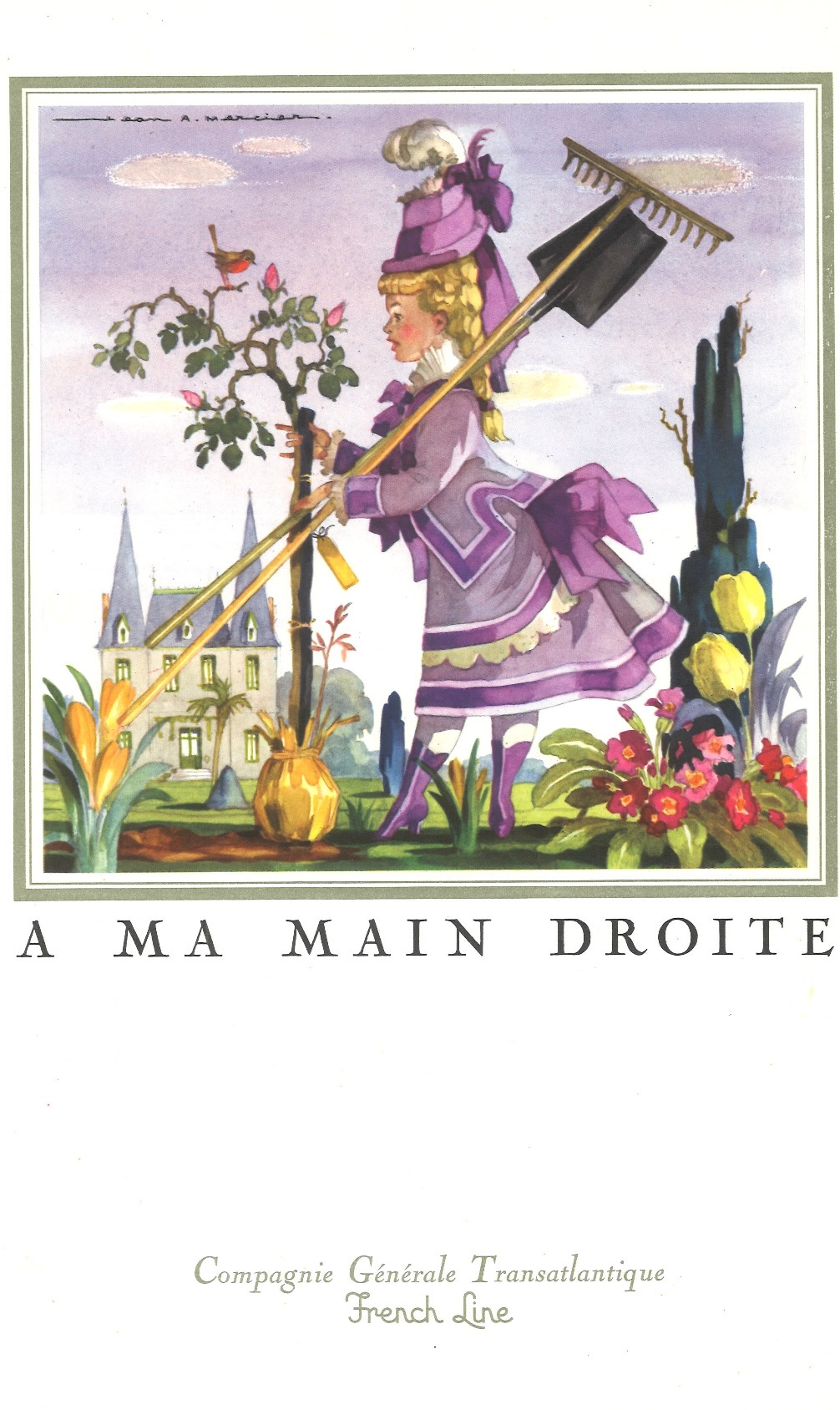wrote me that she’d found the most beautiful menus and mementos of transatlantic cruises her mom had taken as a child in the 1960s.The artwork on each of the menus from the French Line are illustrated ‘Voyageur Songs’, French folk songs that tell stories of fickle winds and lost love or the rose bush that blooms in May.