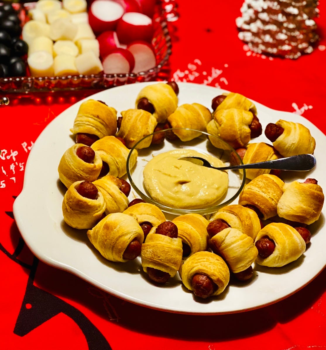 There are three cocktail-food tidbits I remember my mom making for the parties and also for New Year’s Eve for our family.