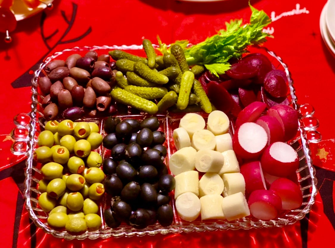 There was a restaurant we went to when I was a kid that had a great relish tray. That’s the one I modeled mine after, but there are so many things you can add.