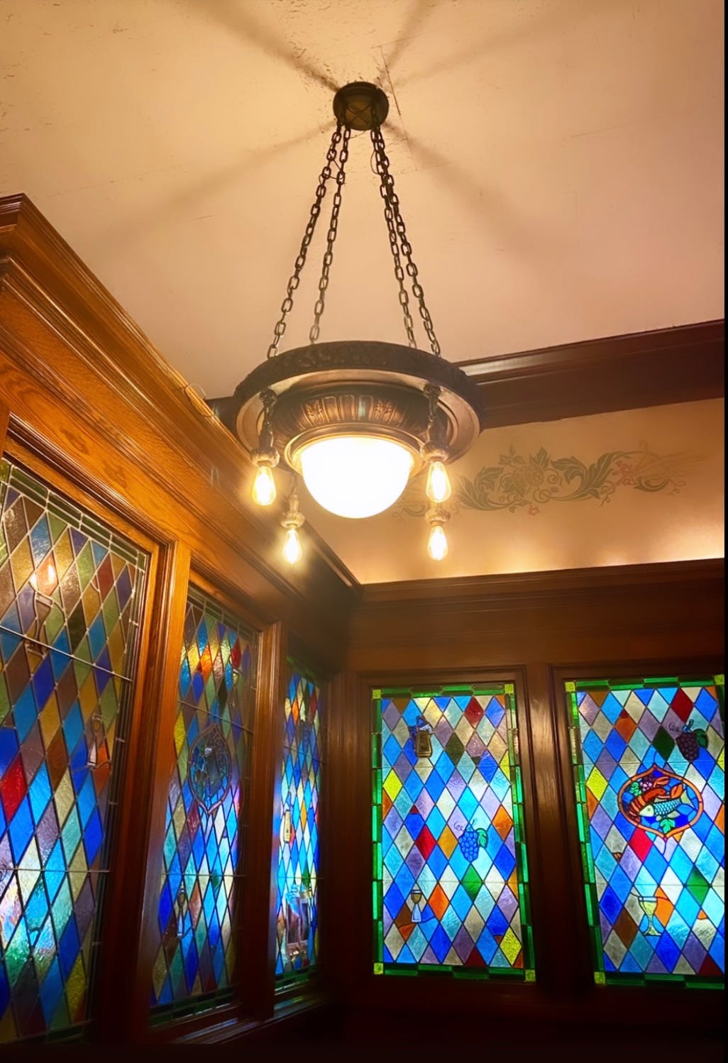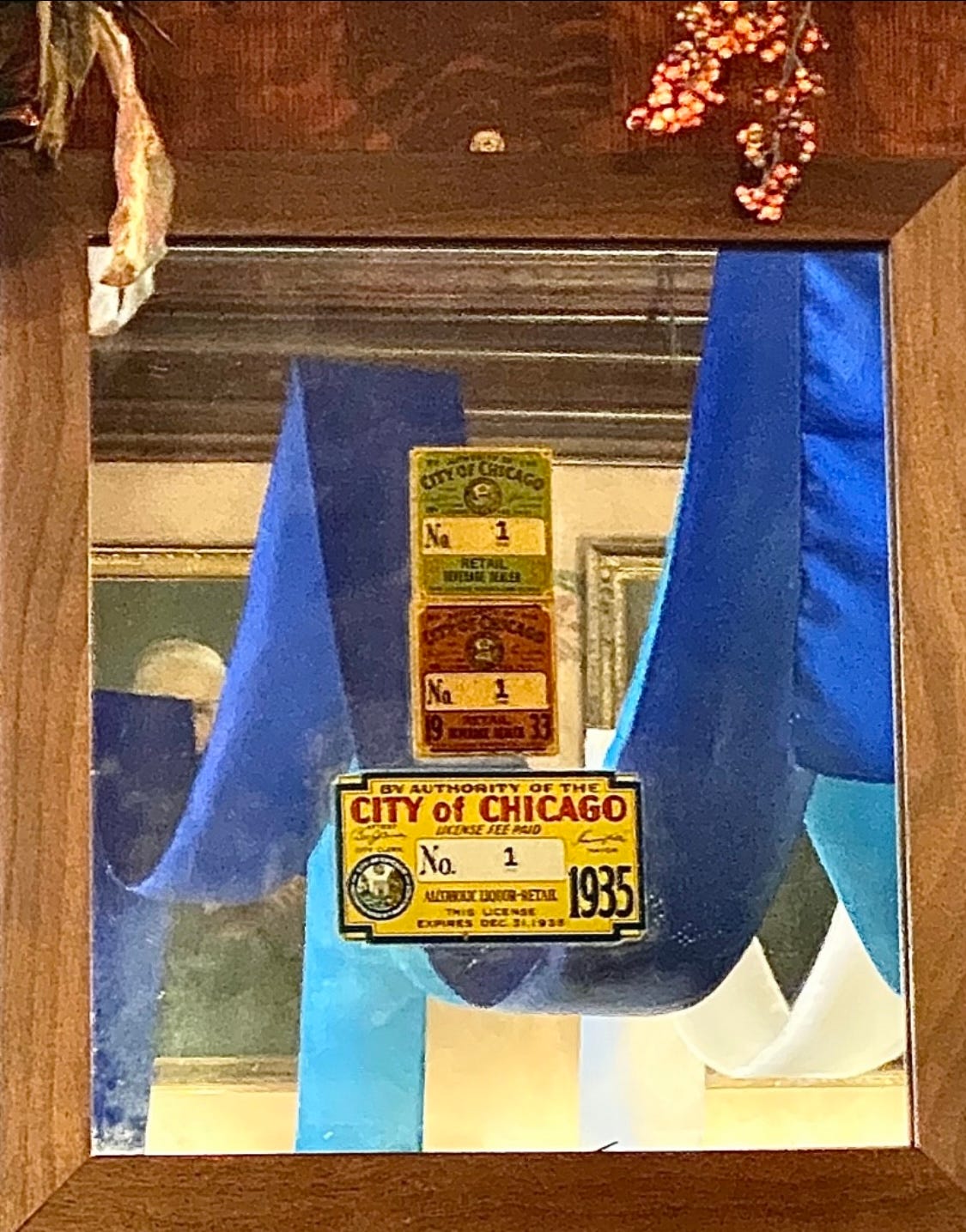 The Berghoff was granted the first liquor license in Chicago (because Herman made sure he was first in line) when Prohibition ended in 1933 and it is still displayed behind the long bar with its beautiful mahogany mantle and murals.