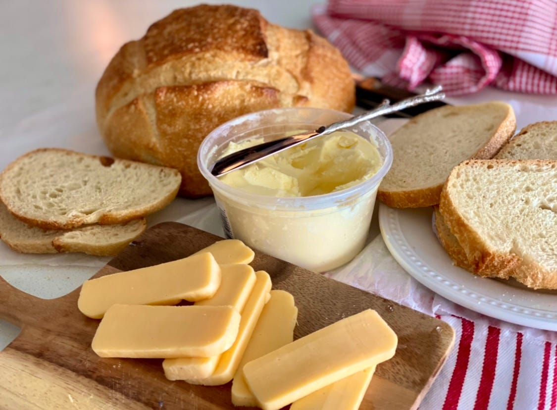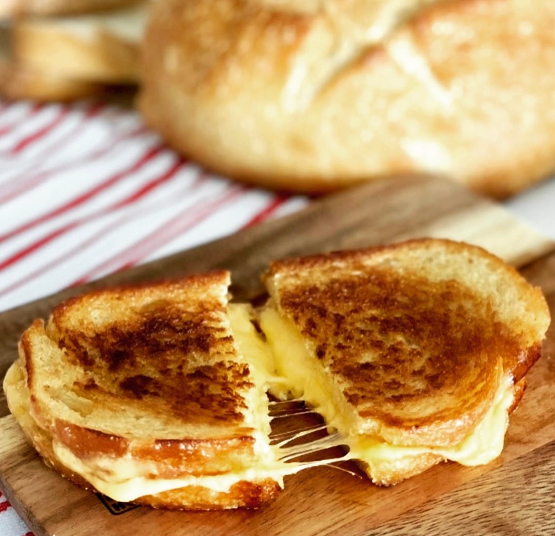 The crunch of the toasty, tangy sourdough, the creamy melted cheese and the sweetness of the summer butter creates one delicious sandwich.