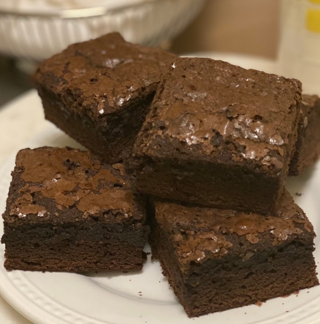 There’s another reason I have a soft spot for Duncan Hines. As I’ve mentioned in earlier newsletters, the very first thing I baked by myself as a kid were Duncan Hines Brownies. I baked up a batch (pictured above) the other night with the optional extra egg and milk instead of water, just like I used to, and they were as good and familiar as I hoped they’d be.