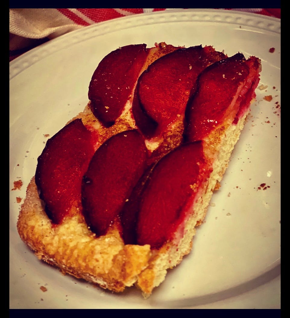 I made the 1931 recipe for Kuchen again (archived in last week’s newsletter) this time with plums and in a square 8”x 8” glass pan. It was delicious. I dusted with a little bit of confectioners sugar (seen in photo at top) to finish.