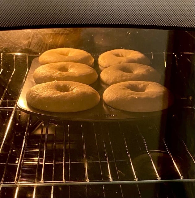 Trust me when I tell you, I love fried doughnuts—but these were delicious and so light and I didn’t have the clean-up after that comes with frying. Here they are, baking away in my new oven.