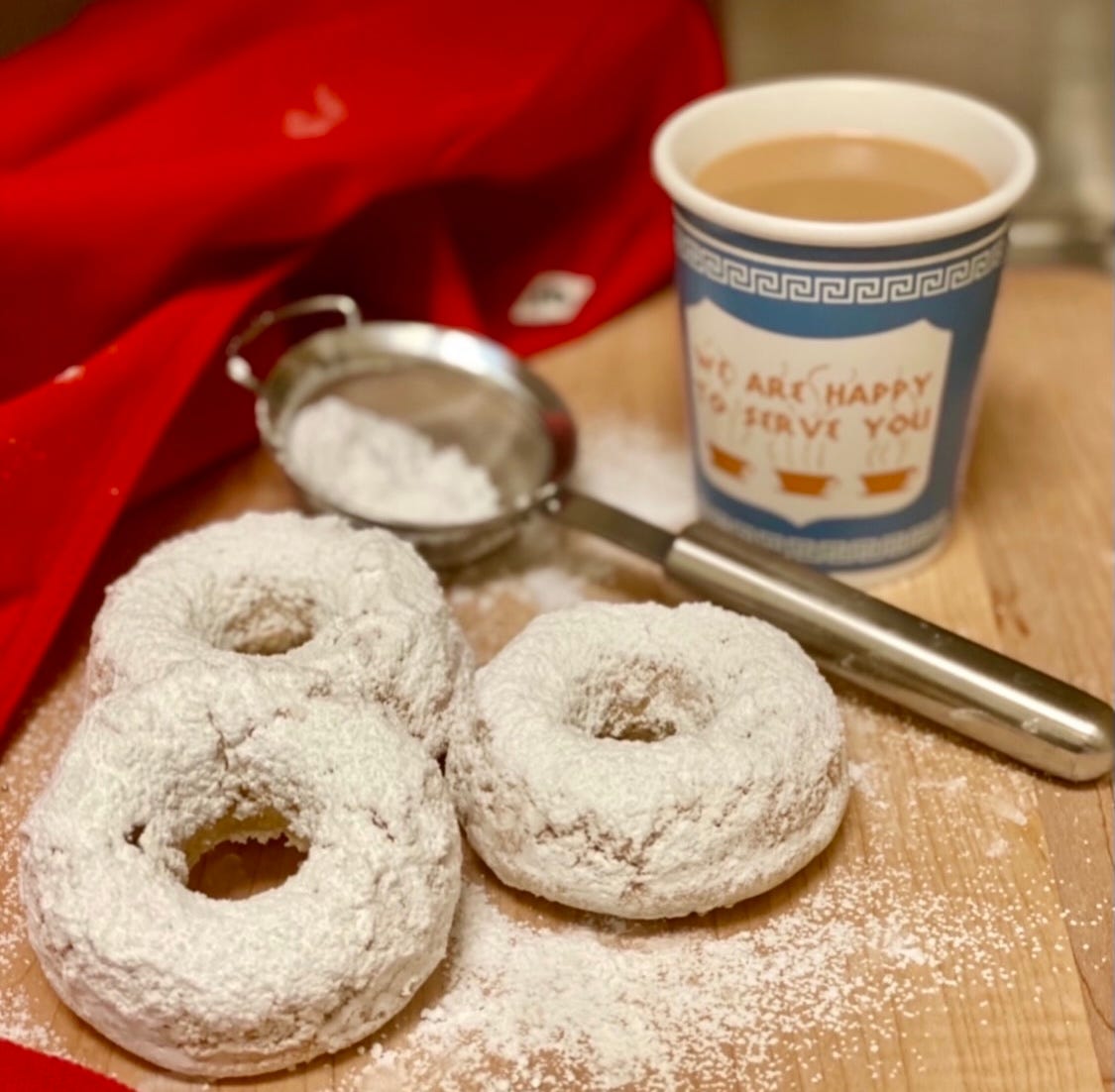 The simple things. Perfect. Powdered sugar is so underrated. And a hot cart coffee ☕ never fails. You'll be happy to know that the deli on my corner still pours fresh hot coffee into the classic blue Greek Diner paper cups!!